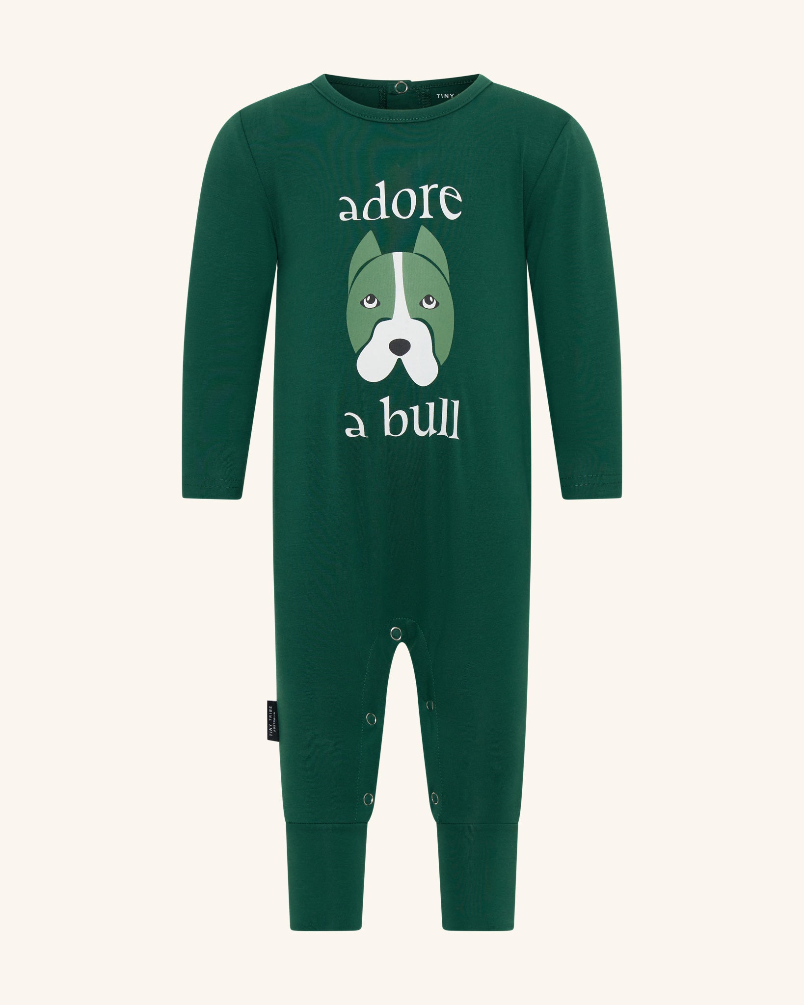 Our Classic Adore A Bull Romper features a a front graphic design with snap buttons at the bottom and back for easy access. Crafted from Cotton Elastane, the composition provides comfort, warmth and durability. Finished neck and sleeve detail. Designed in Australia.