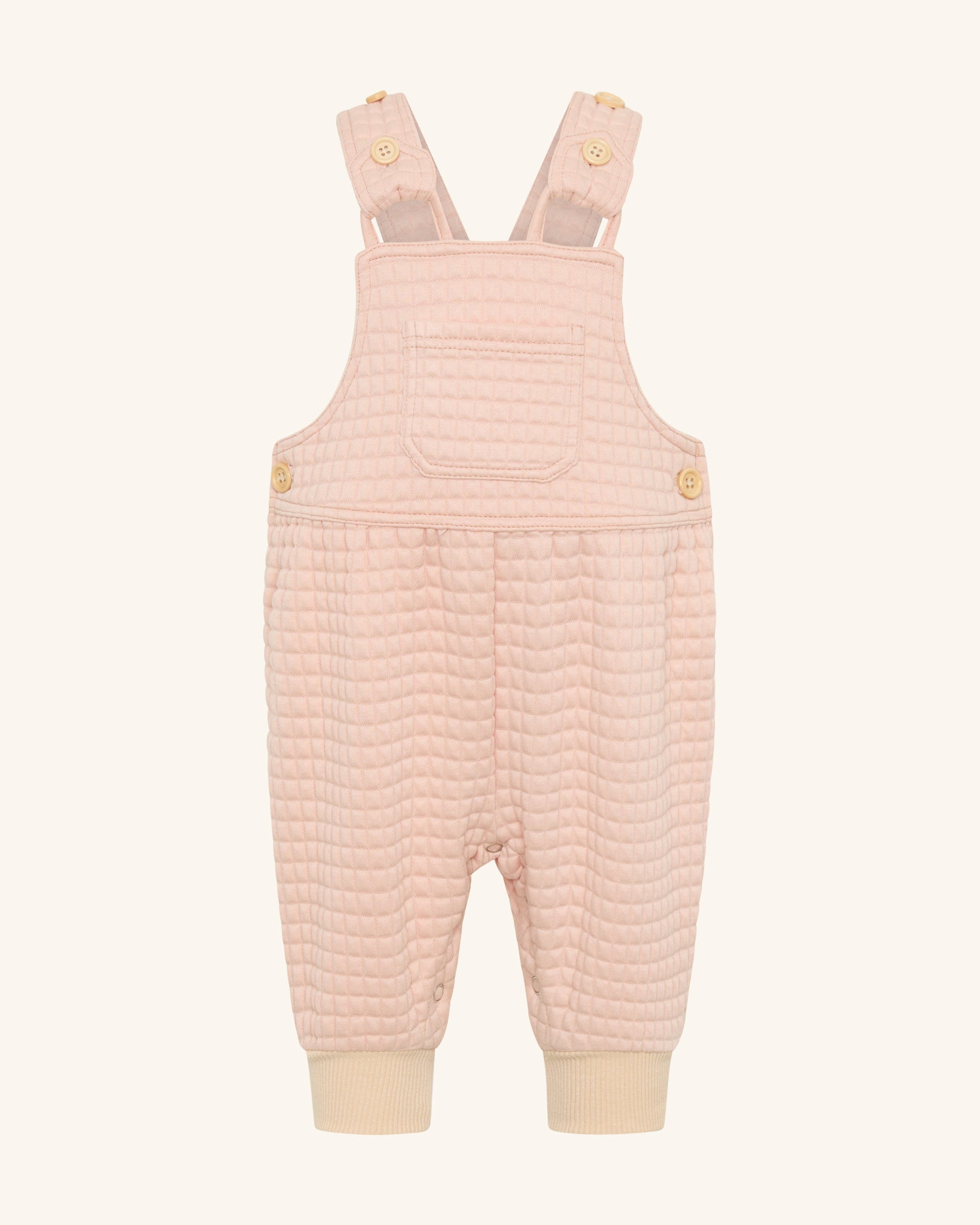 Our Waffle Dungaree Overall in cream features adjustable straps with snap button detailing at the bottom for easy access. Crafted from quilted waffle, the composition provides warmth, comfort and durability. Finished cuff and hem detail. Designed in Australia.