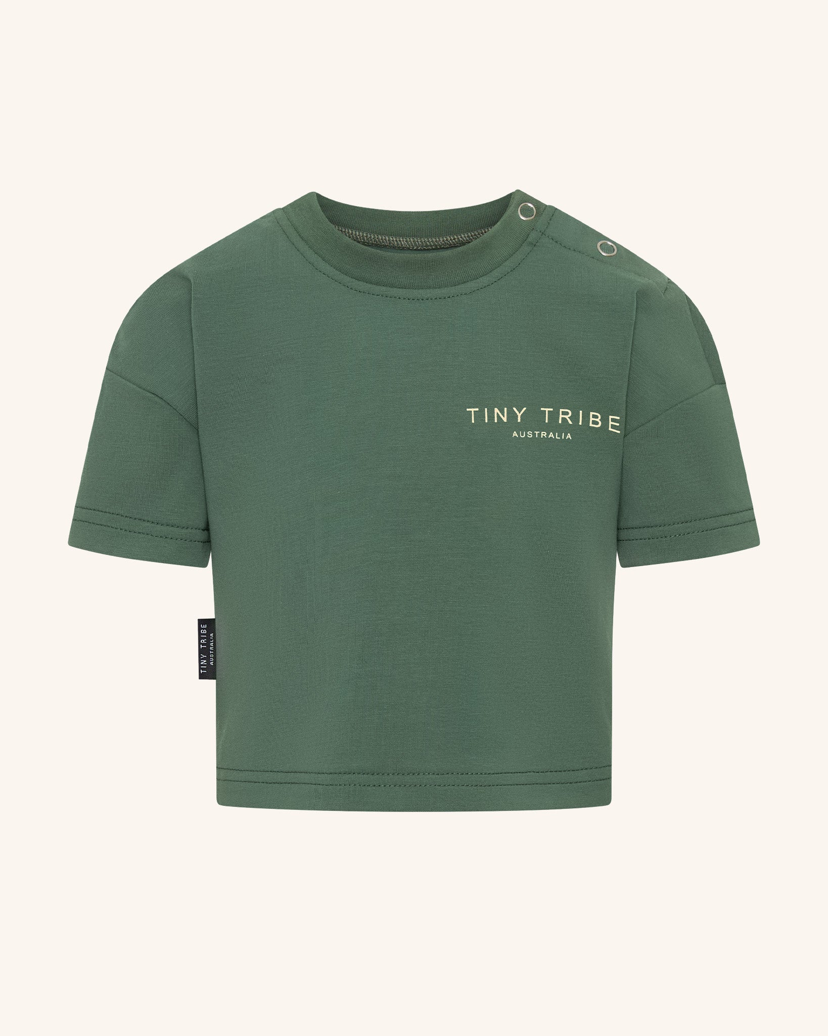 Our Core Drop Shoulder Tee in forest green is part of our core collection. Crafted from our signature cotton elastane, the composition provides comfort, stretch and durability. Finished neck and sleeve detail. Designed in Australia.