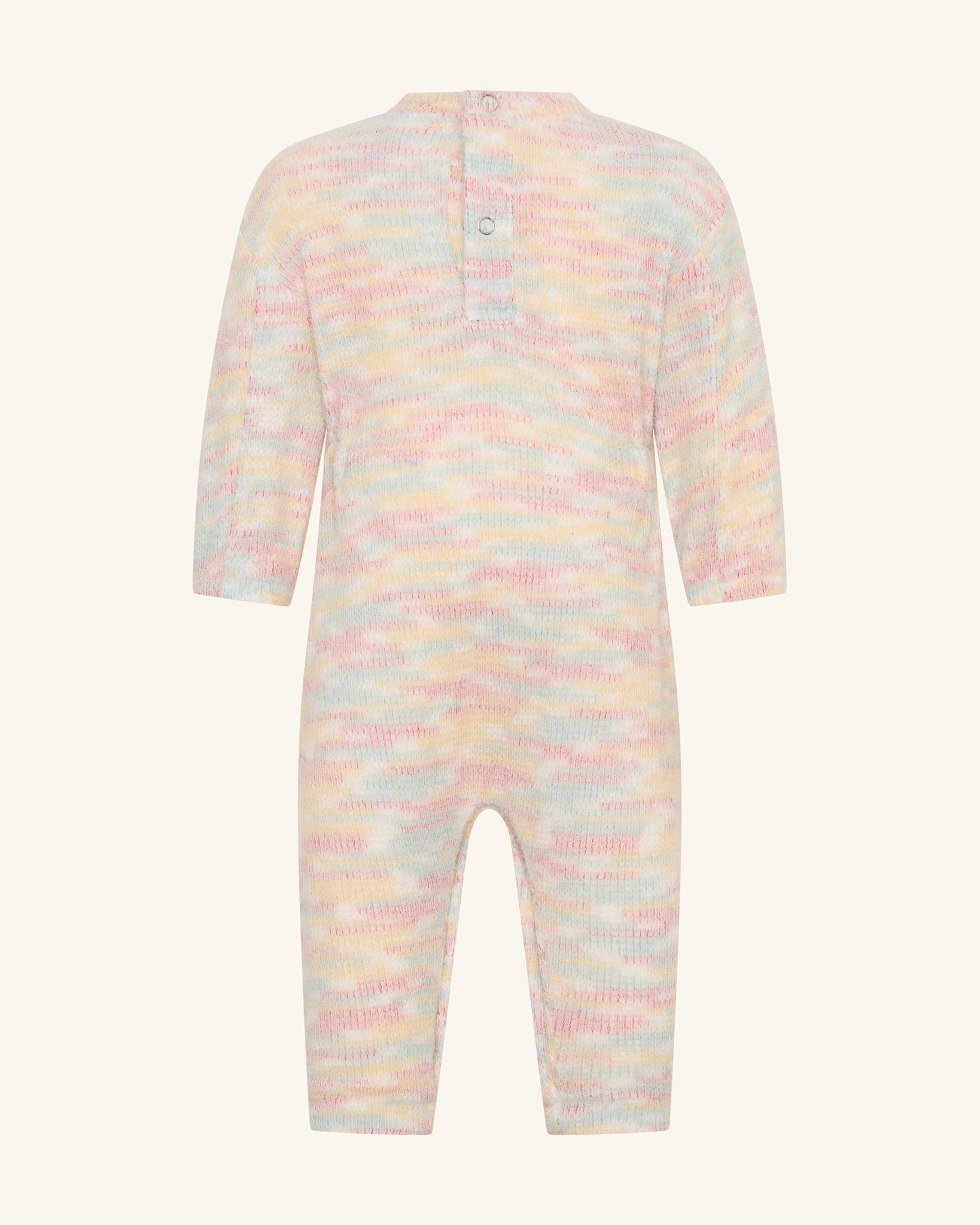 Our new Knit Romper features a multi-coloured knit all-over with snap button detailing at the bottom and back for easy access. Crafted from true knit, the composition provides comfort, warmth and durability. Finished neck and sleeve detail. Designed in Australia.