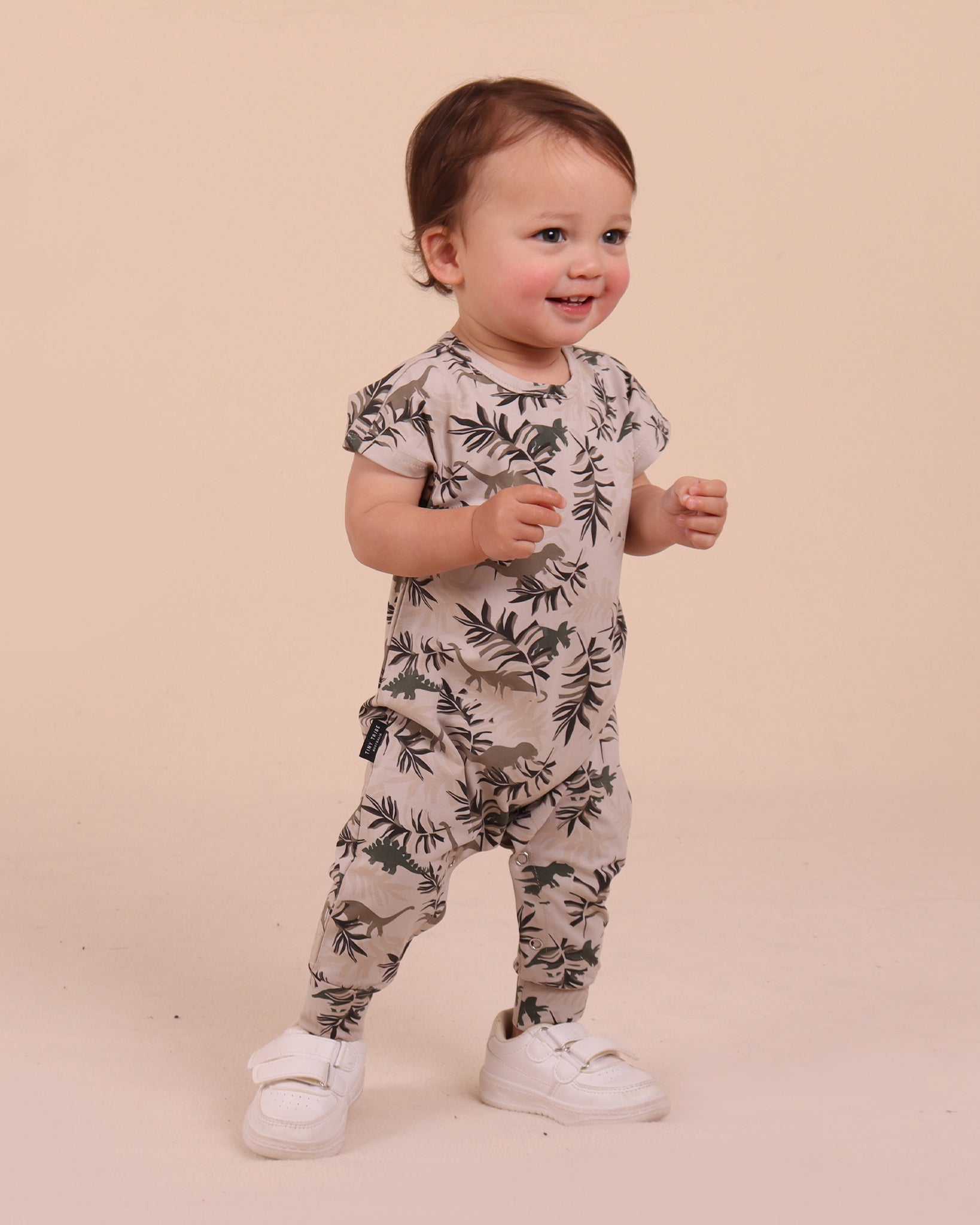 Notre barboteuse Dino Park arbore un imprimé ludique de dinosaures et de palmiers, avec des manches courtes. Confectionnée dans notre mélange signature de coton et d'élasthanne, elle offre confort, élasticité et résistance. Finitions soignées au col, aux poignets et aux manches, avec boutons-pression à l'entrejambe et au dos pour un enfilage facile. Conçue en Australie.