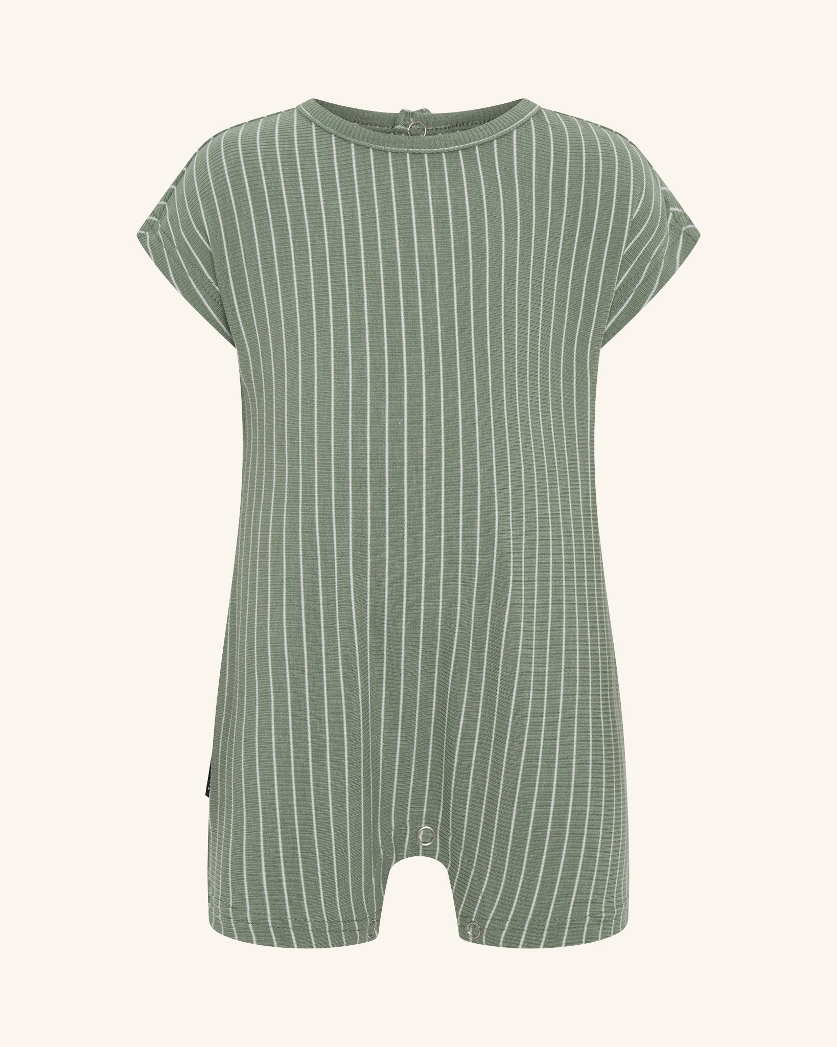 Notre combinaison côtelée verte est dotée de manches courtes avec boutons-pression à l'entrejambe et au dos pour un enfilage facile . Confectionnée en côtes douces de rayonne recyclée, elle offre confort et durabilité. Finitions soignées au col, aux manches et à l'ourlet. Modèle conçu en Australie.