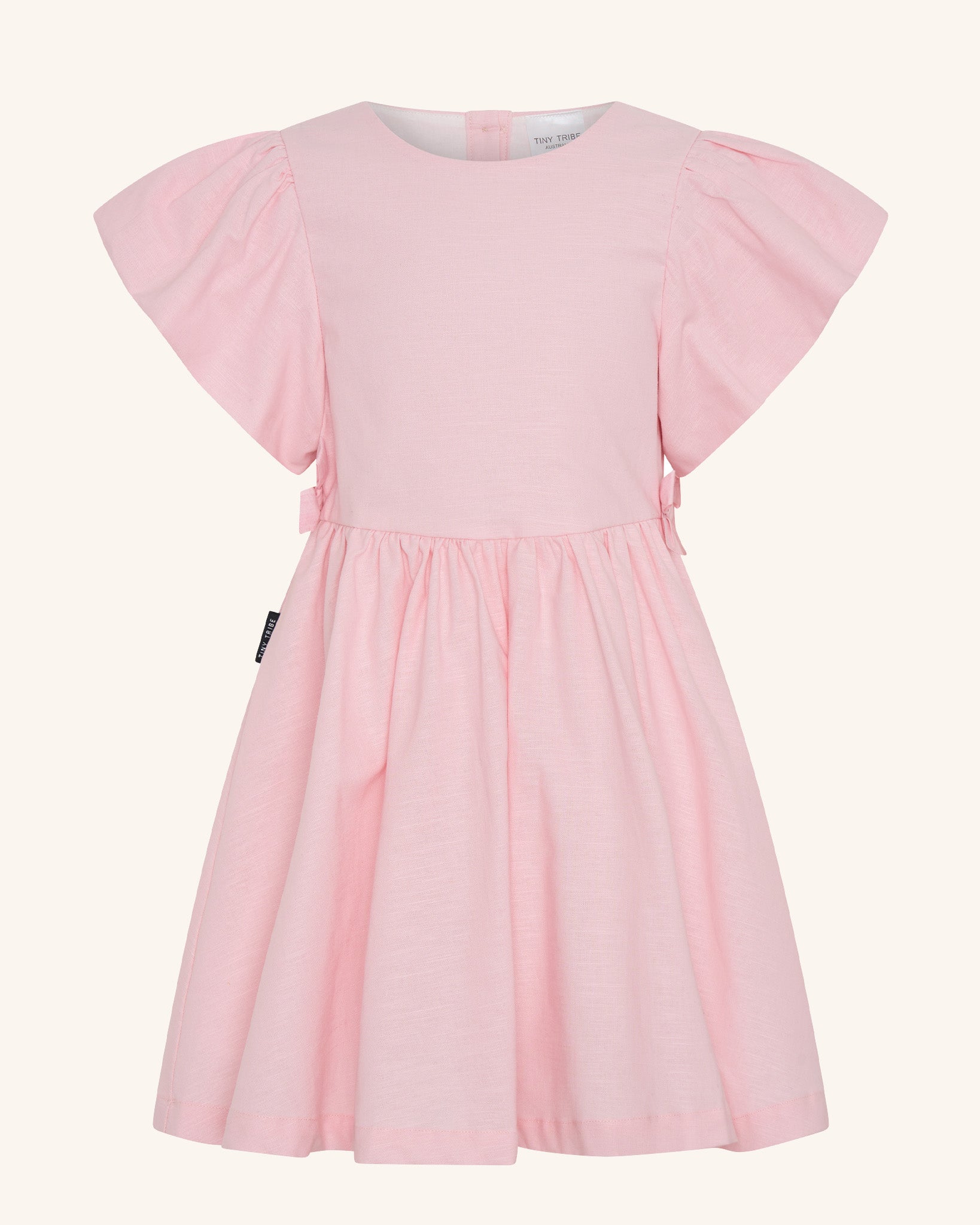 Notre robe princesse à manches bouffantes et nœud est ornée d'un adorable nœud sur le côté. Confectionnée dans un mélange de coton et de lin, elle offre confort, élasticité et résistance. Création australienne.