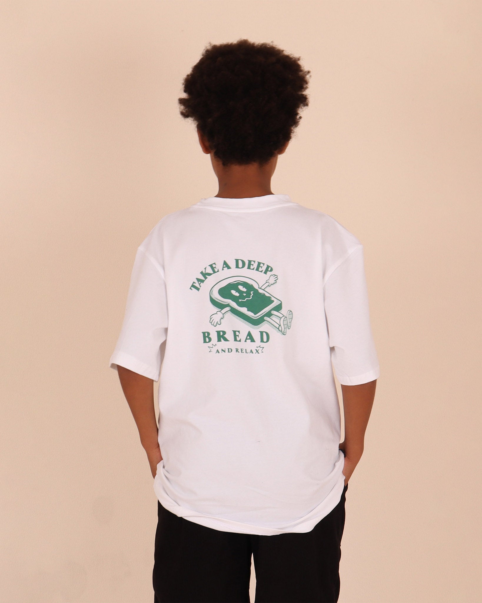 Our relaxed Bread Short Sleeve Top Sleeve Top features a large graphic print centre-back with small verbage centre-front. Crafted from Cotton Elastane, the composition provides comfort, stretch and durability. Designed in Australia.