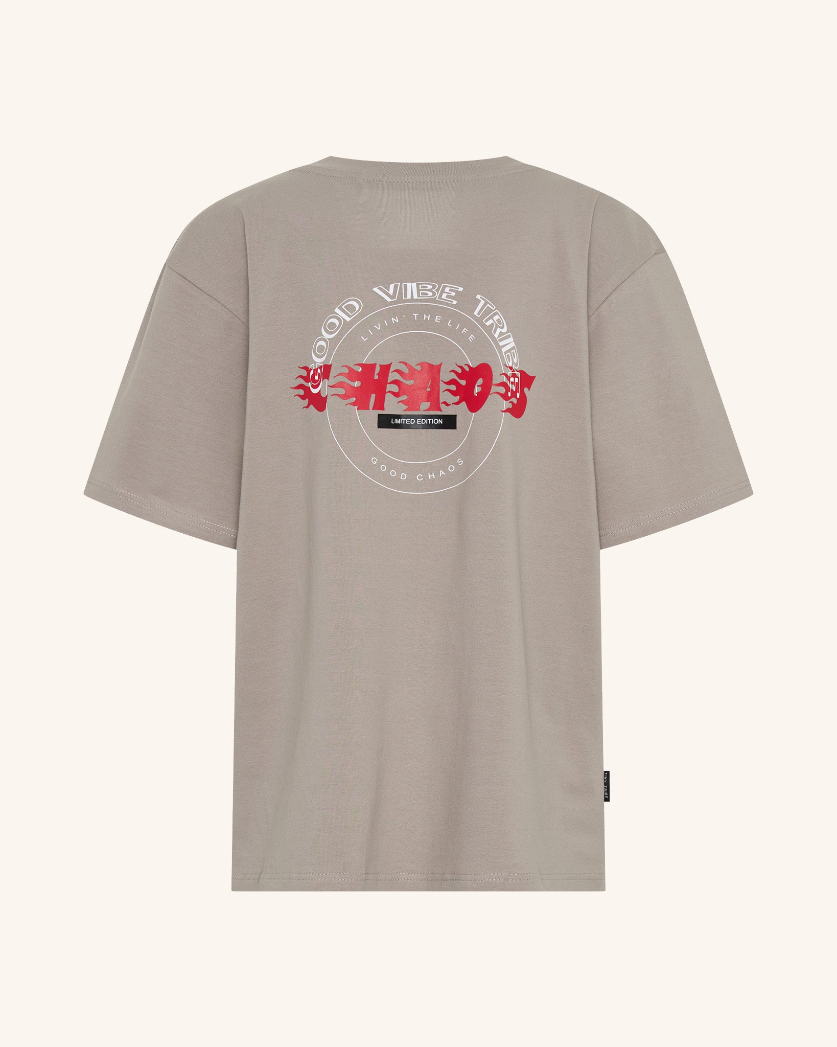 Our relaxed Good Chaos Short Sleeve Top features a large graphic print centre-back with small verbiage centre-front. Crafted from Cotton Elastane, the composition provides comfort, stretch and durability. Designed in Australia.