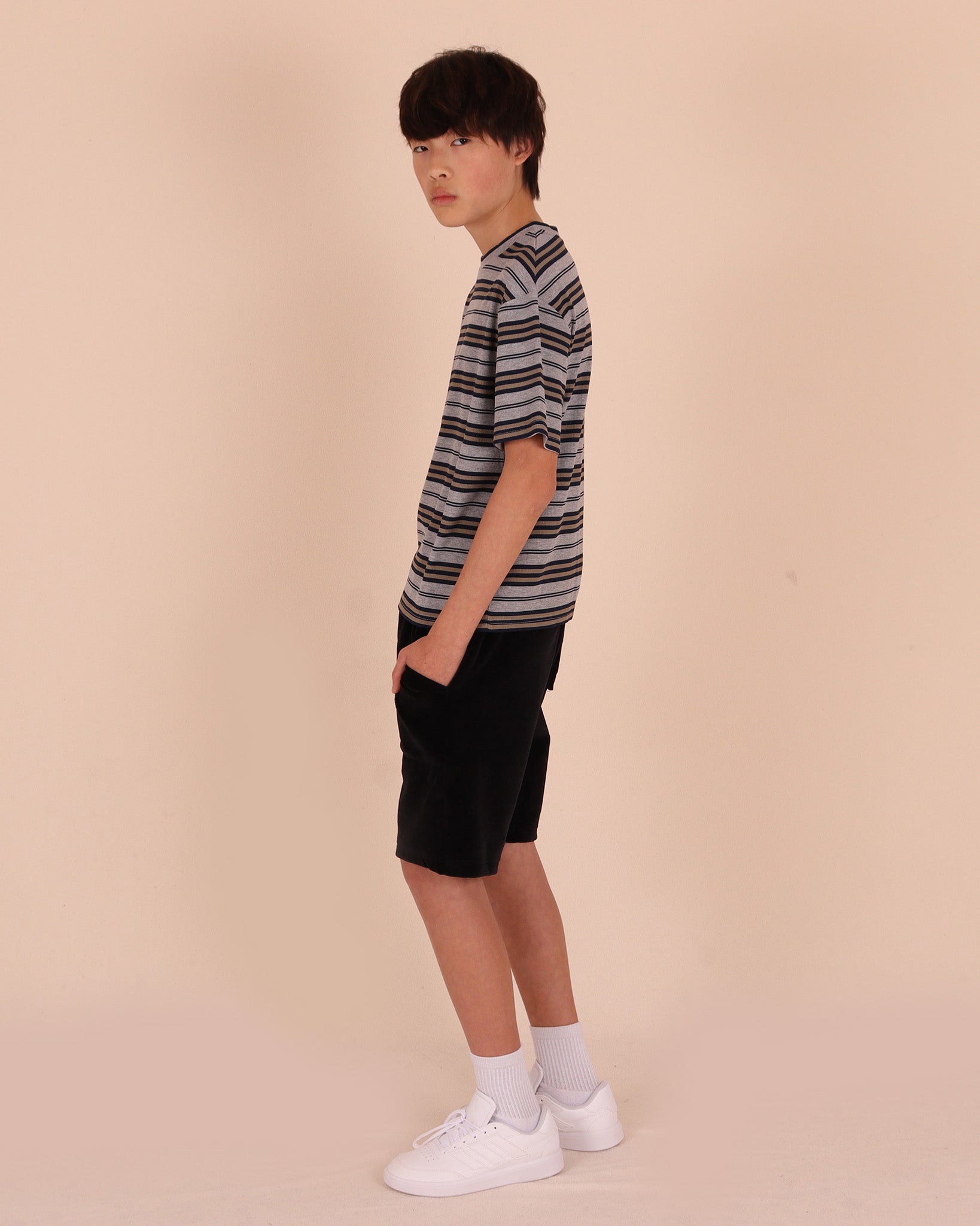 Our relaxed Short Sleeve Stripe Ribb Top features a grey and green ribbed texture throughout. Crafted from soft ribb, the composition provides comfort, stretch and durability. Designed in Australia.