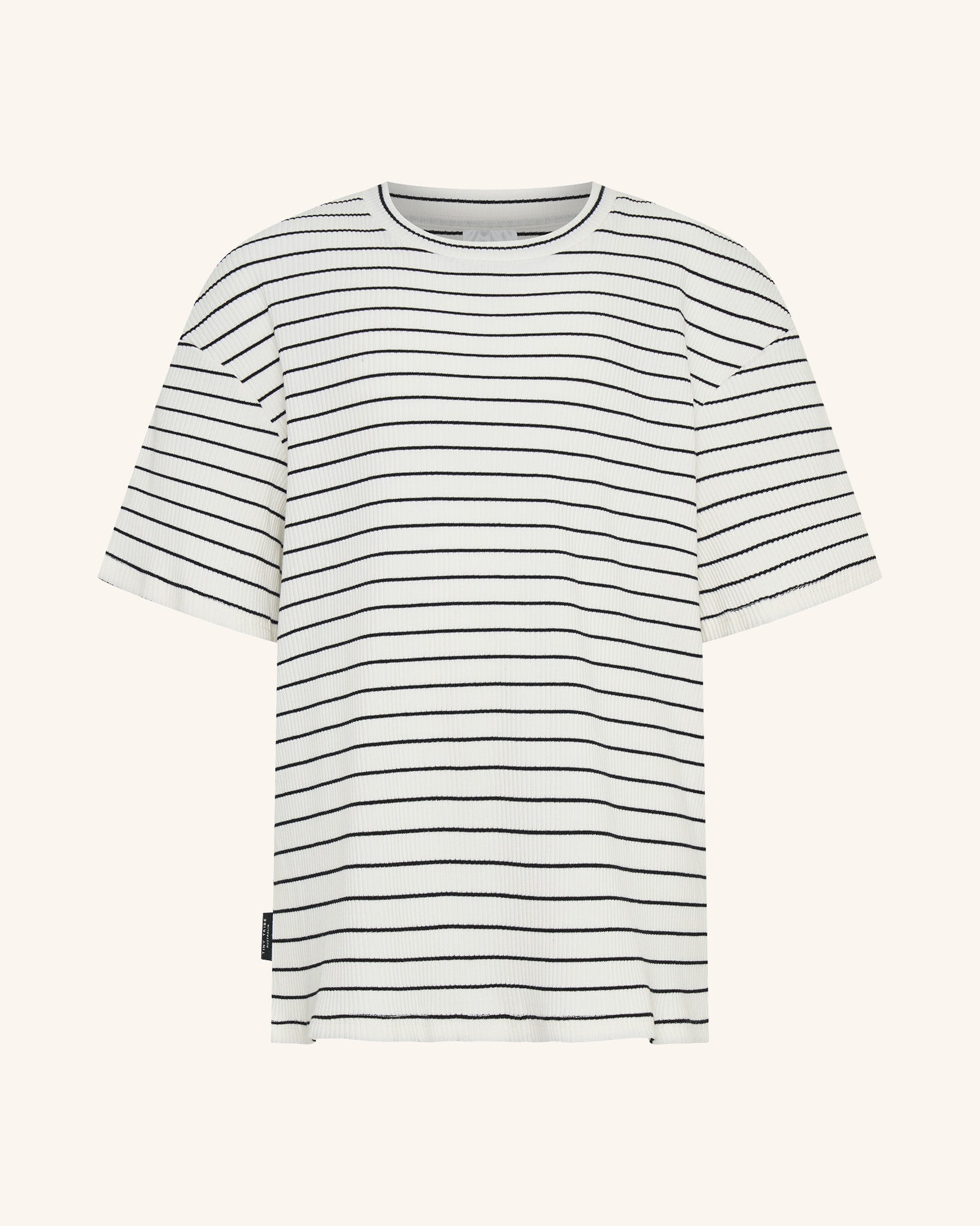 Our relaxed Short Sleeve Stripe Ribb Top features a white and black ribbed texture throughout. Crafted from soft ribb, the composition provides comfort, stretch and durability. Designed in Australia.